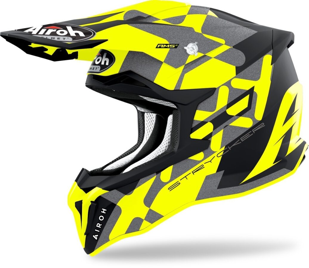Airoh Strycker on kypärämalli kuitukuorella, jossa on Italialaisvalmistajan huippuominaisuuksia, kuten helposti hätätapauksissa irrotettavat poskipalat (AEFR) ja rotaatiota kaatumisessa ja törmäyksessä vähentävä AMS2 (Airoh Multiaction Safety System). Kypärä on aerodynaamisesti muotoiltu ja siinä on viisi tuuletusaukkoa edessä ja kaksi ilmanpoistoaukkoa takana.