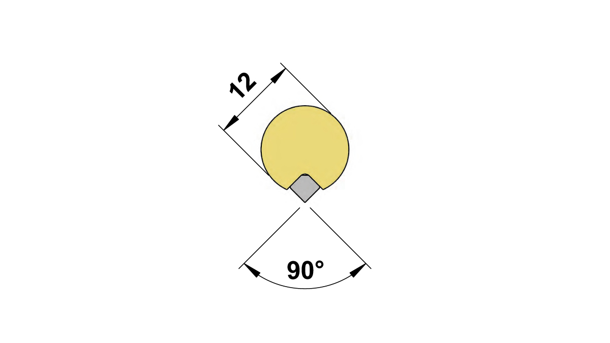 Runkona 12 mm tanko, jossa 8 kpl 90 asteen kovametallipalaa yhteispituudeltaan 204 mm.